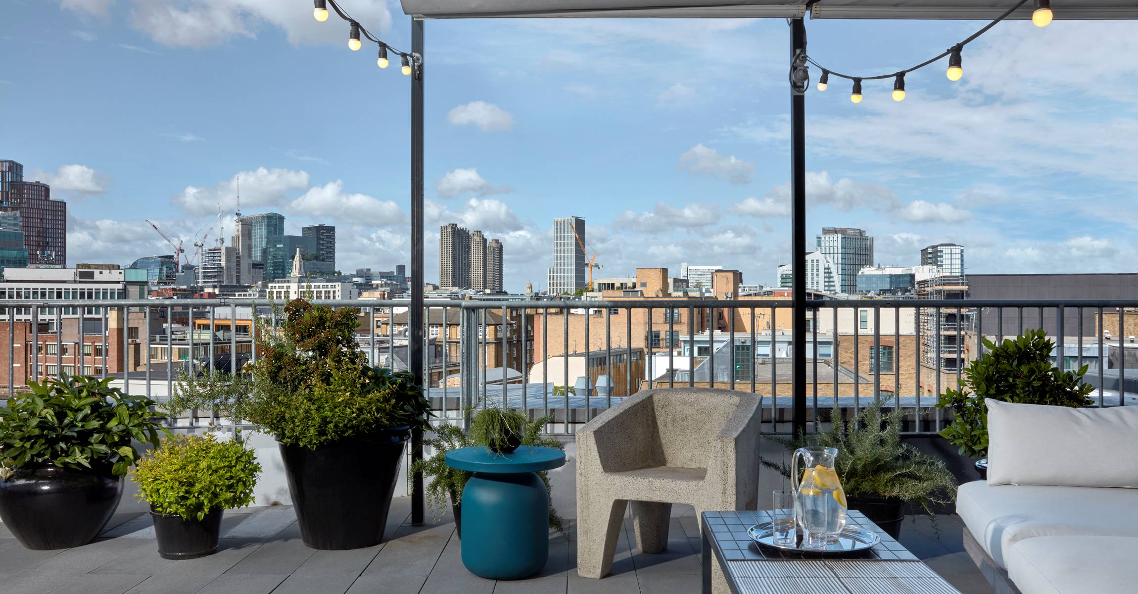 Studio Suite South has a comfy sitting room with comfy sofas and large dining table, relaxing bedroom and a pretty darn large private terrace with views towards the city. Furnished with a mix of bespoke and curated vintage furniture, it’s like having your own East London Apartment.