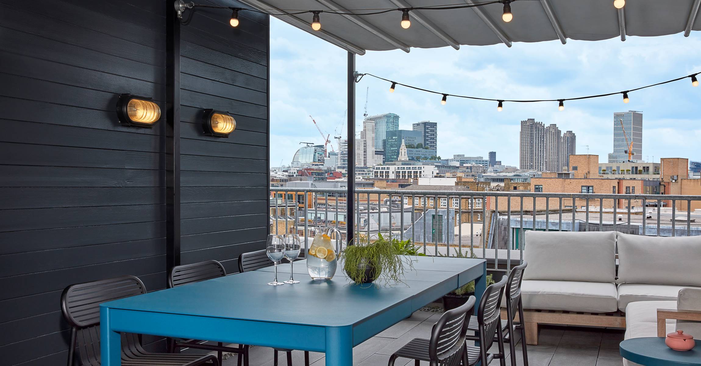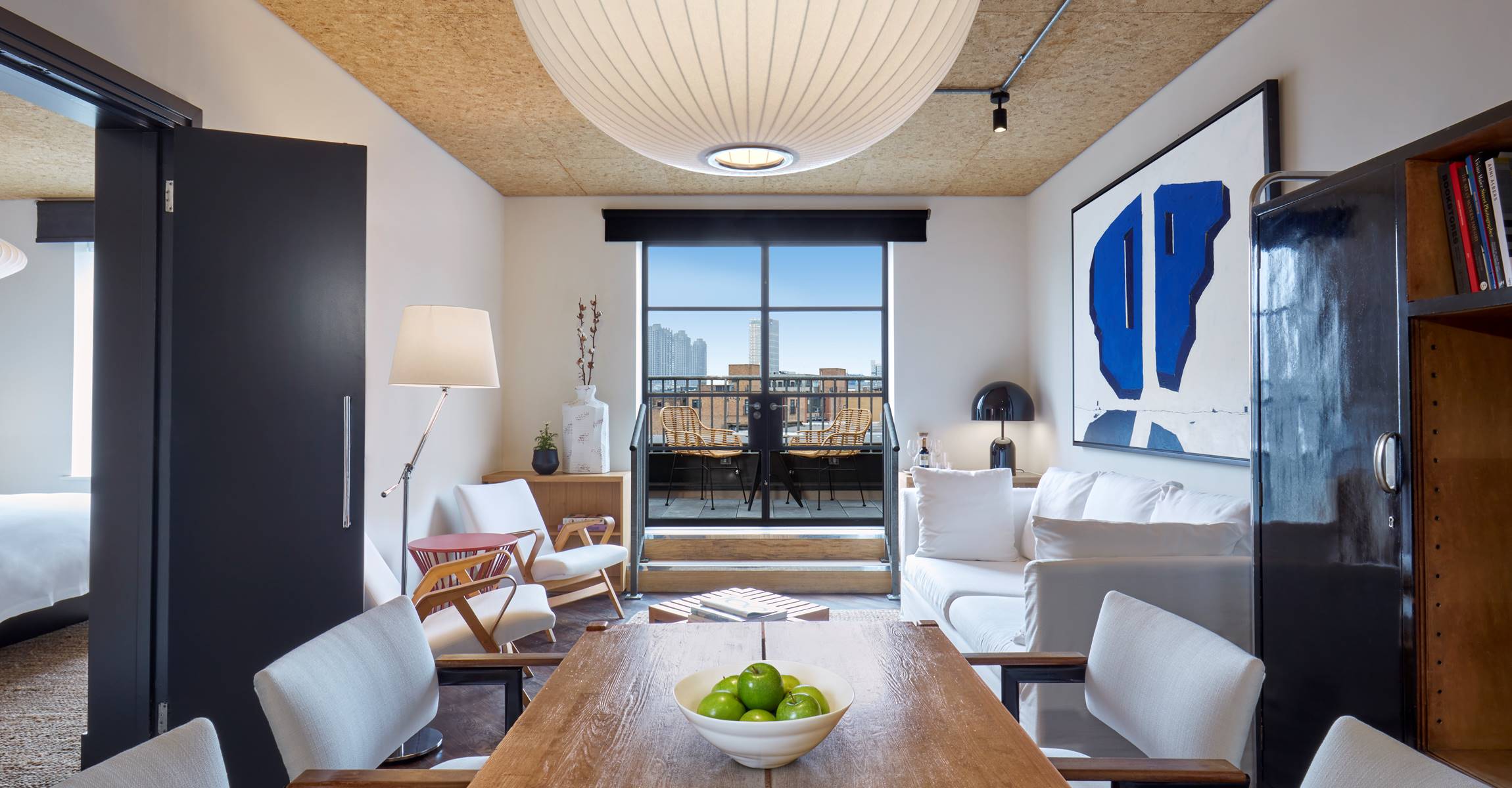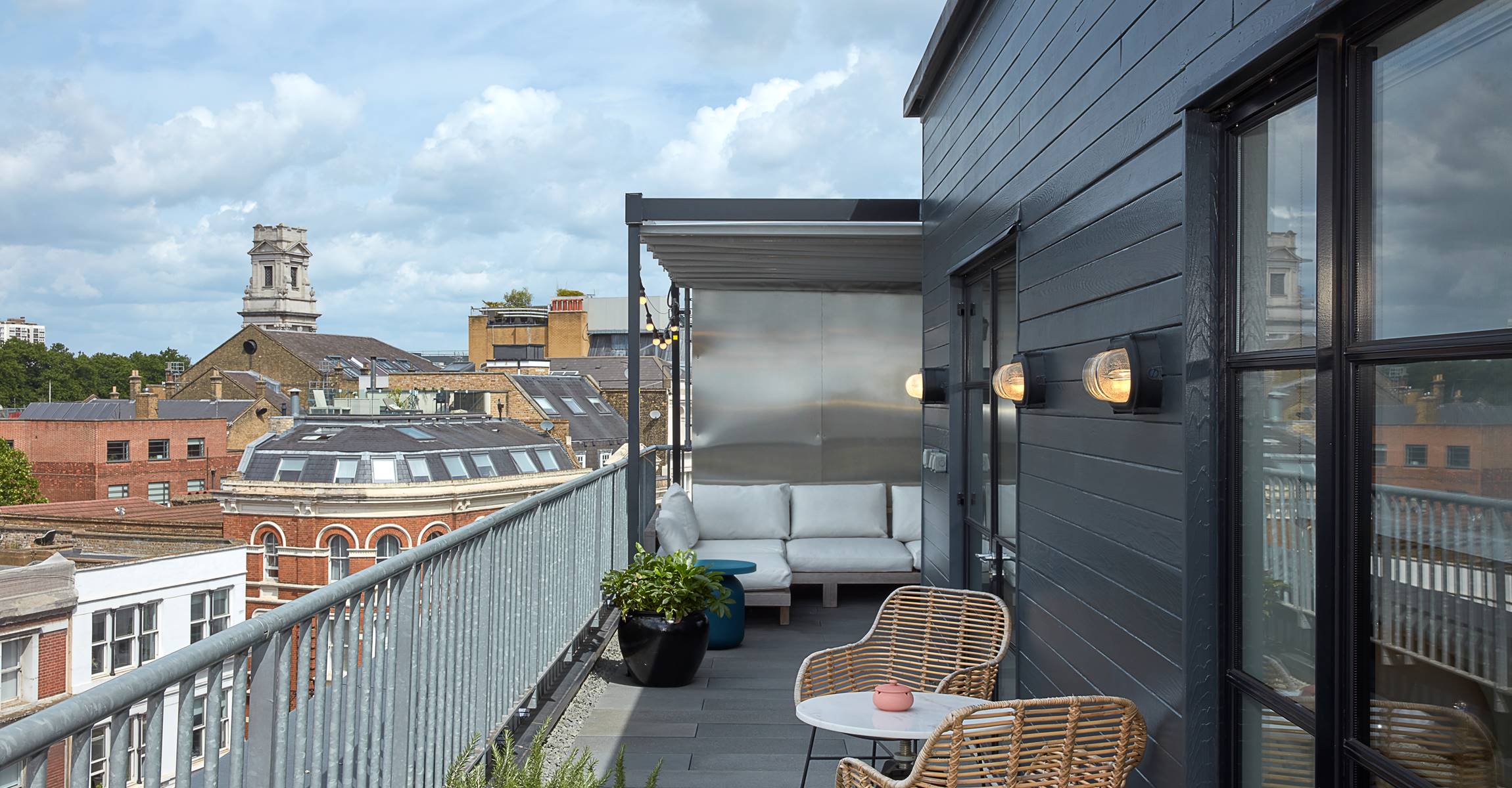 Studio Suite North is our largest suite with comfy sitting and dining room, relaxing bedroom, and a large wrap-around private terrace with views of Shoreditch and space to dine and relax. Furnished with a mix of bespoke and curated vintage furniture, it’s like having your own East London Apartment.