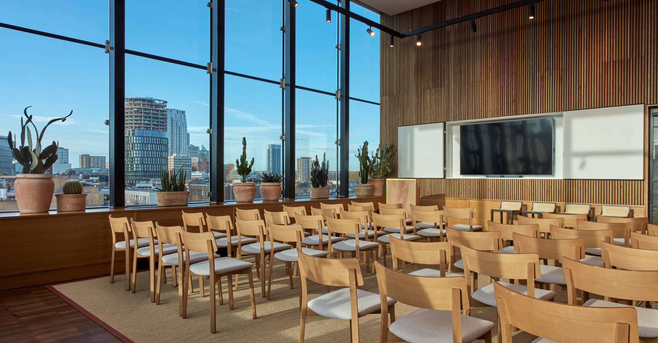 Our light-filled events floor sits at the top of the hotel. Four comfortable meeting rooms work as well for private dining as they do board meetings. The 100 Room with bar and sweeping City views is a versatile setting for brand launches, press days, talks and parties - with exclusive hire of the whole rooftop also an option.